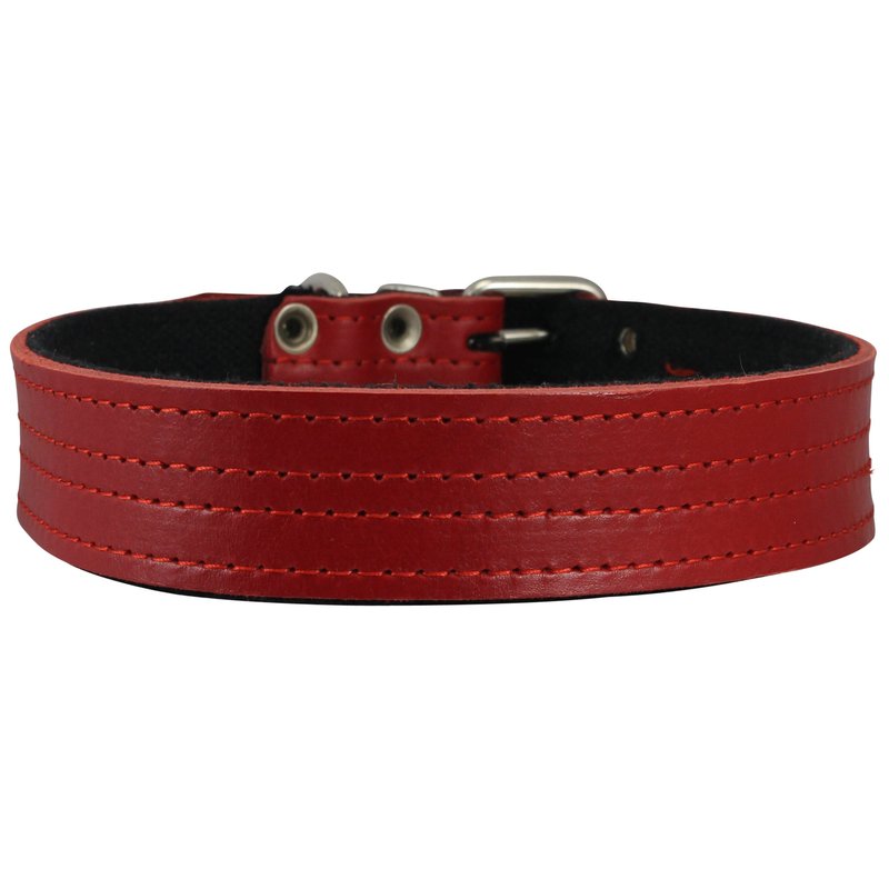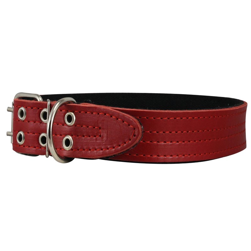 Genuine Leather Dog Collar, Padded Red, 1.5" Wide. Fits 14"-18" Neck Size, Medium