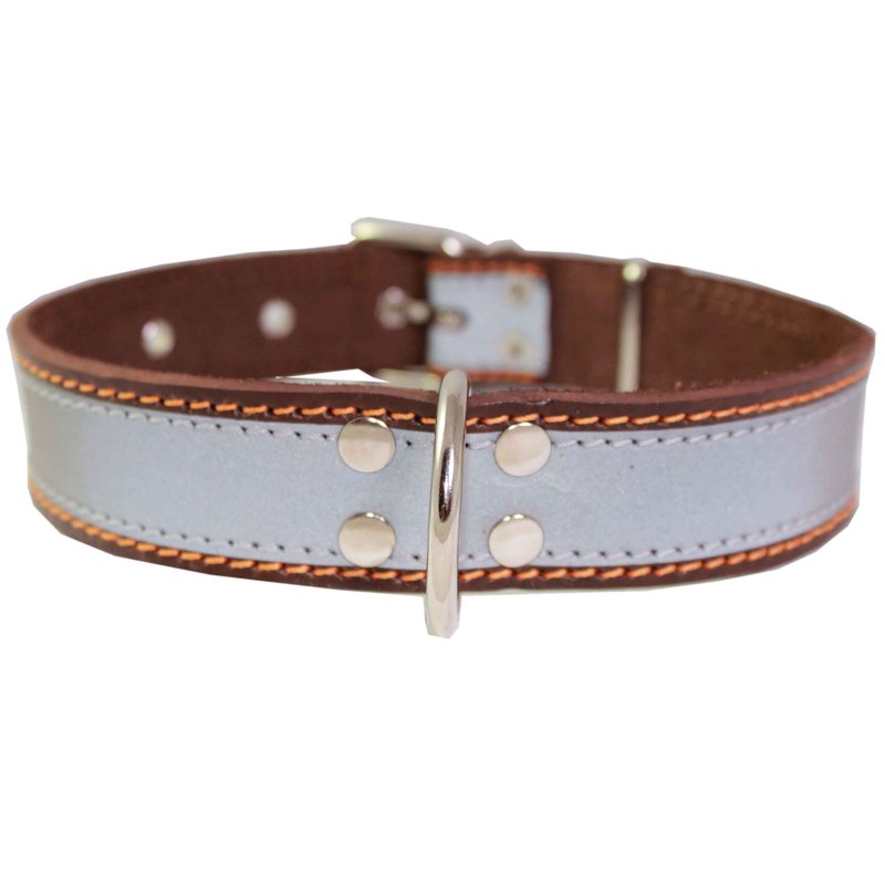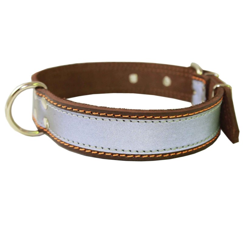 This durable collar is made of high quality genuine leather with reflective stripe to enhance visibility during the day as well as at night. Trimmed with contrast color thick waxed thread. Designed with the safety and comfort of your dog in mind, made to last. Most suitable for Large breeds.