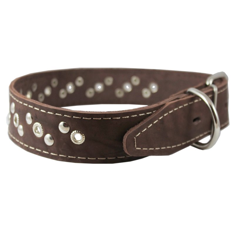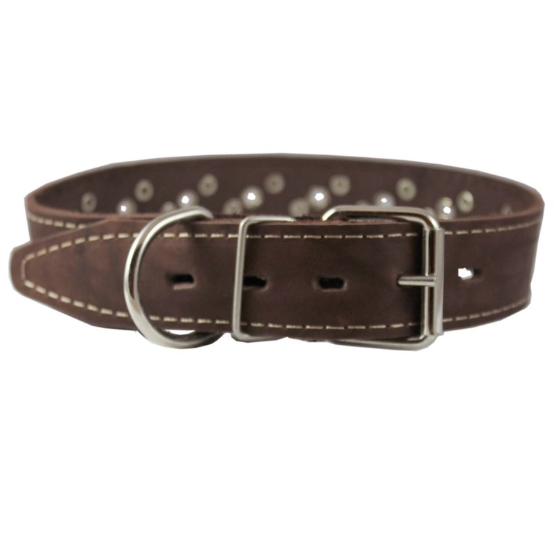 Genuine Leather Studded Dog Collar 22"x1" Brown Fits 15"-19.5" Neck