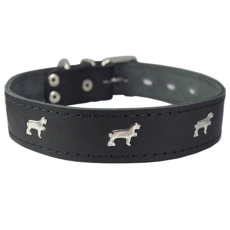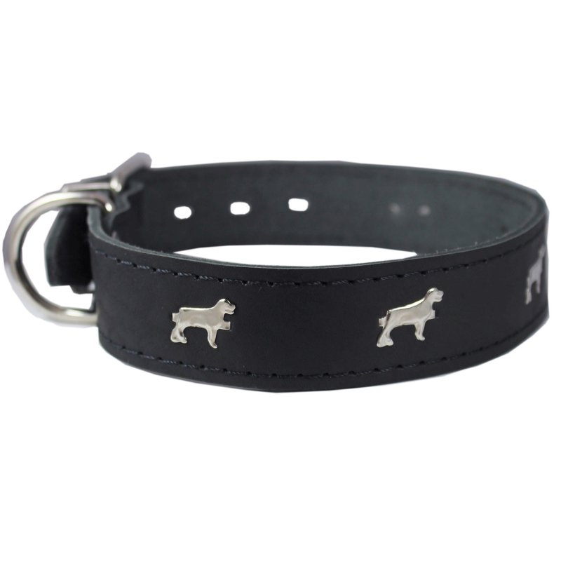 Genuine Leather Studded Dog Collar, Black, 1.5" Wide. Fits 16"-20" Neck Size Amstaff