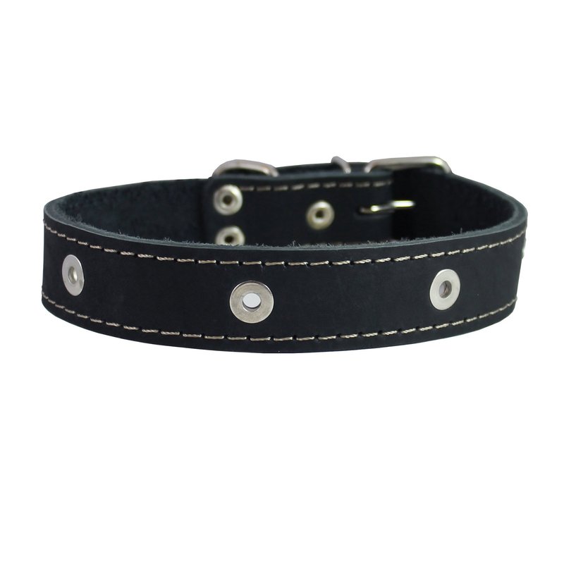 This durable studded dog collar is made of quality genuine leather. Trimmed with thick waxed thread. Perfect collar for daily use, made to last.