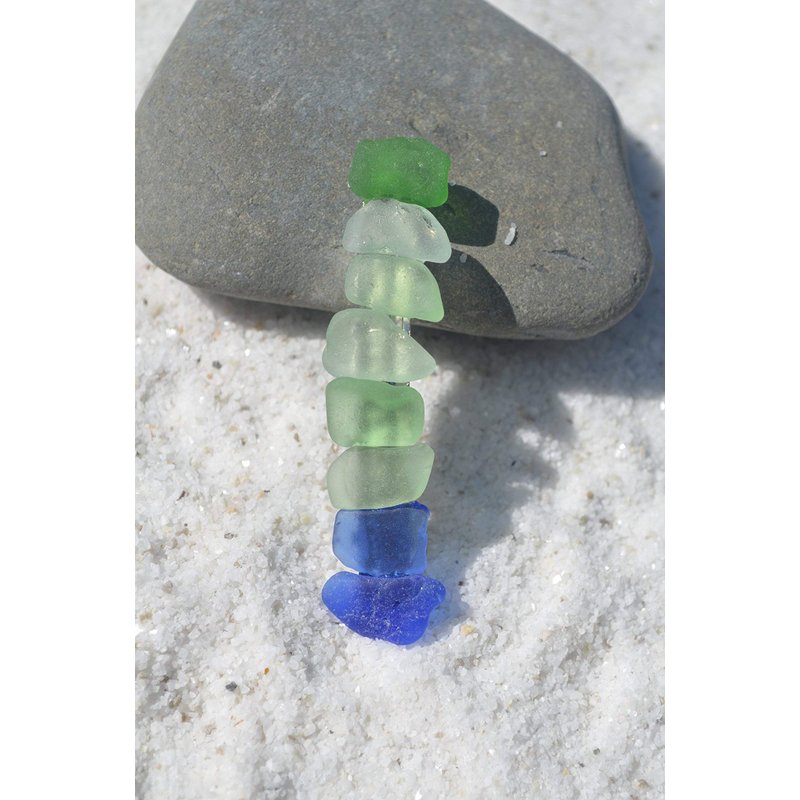 Genuine frosted sea glass in varying shades of blue, green, aqua and sea foam adorn this French barrette. The pretty colorful beach sea glass adorns a silver metal French barrette. The French barrette is perfect for frolicking in the surf, for a day out at the beach or for a tropical vacation. The sea glass is authentic frosted blue beach sea glass. The French hair barrette is handmade; each piece of sea glass was carefully selected for its color to create a stunning design in a brilliant shade of frosted blues and aquas. The sea glass is genuine and was collected on the rocky shores and sandy beaches of coastal Maine. The sea glass has a lovely natural frosted surface as a result of the glass being tossed about the waves and ocean shores for a number of years. The sea glass French barrette is made in the USA and from a smoke free environment. The sea glass French barrette measures: 61 mm x 16 mm x 15 mm or 2.4 inches x .6 inches x .57 inches.