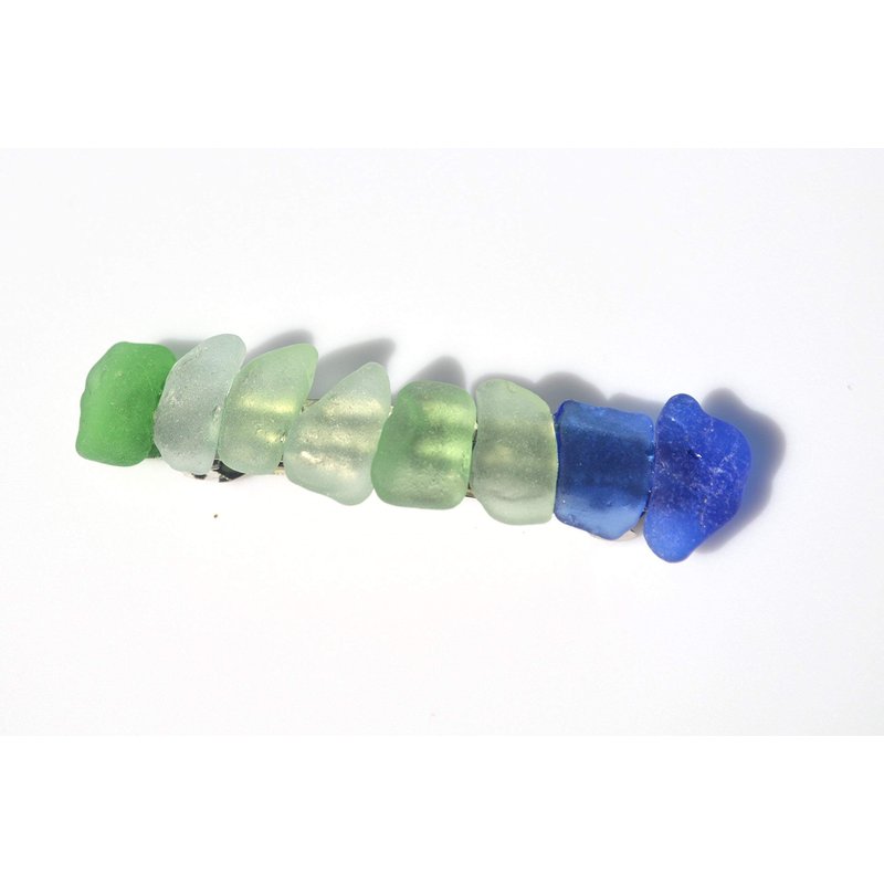Genuine Shades of Blue and Sea Foam Sea Glass French Barrette Hair Clip