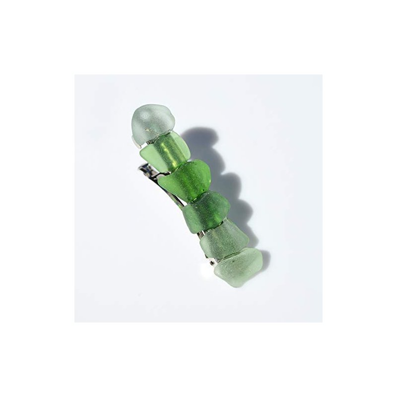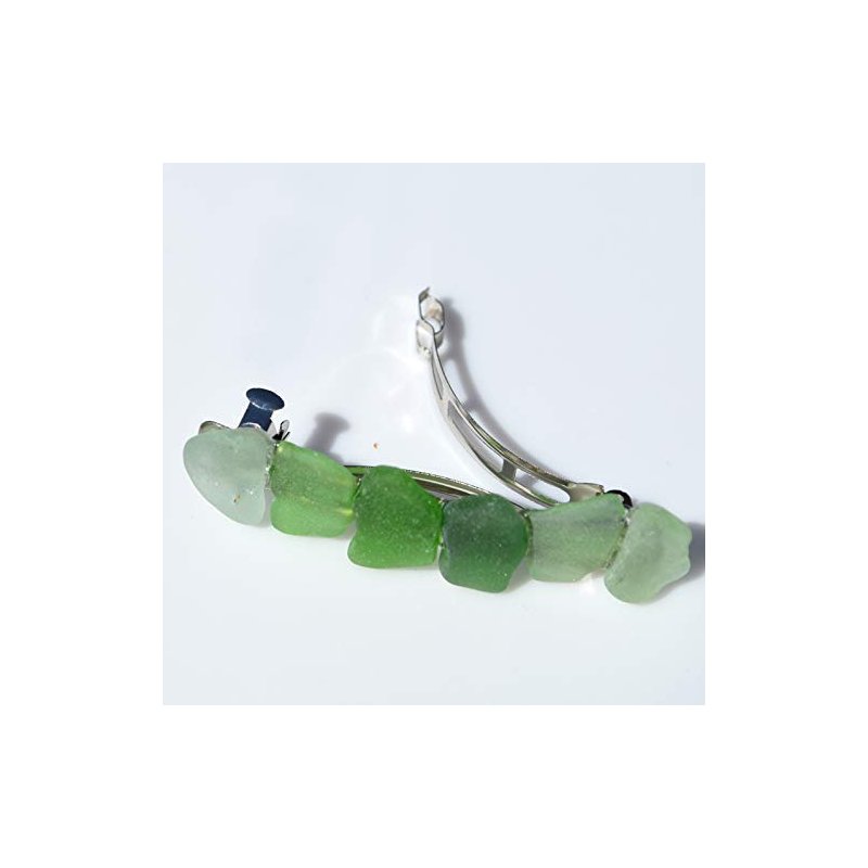 Genuine Shades of Green Sea Glass French Barrette Hair Clip