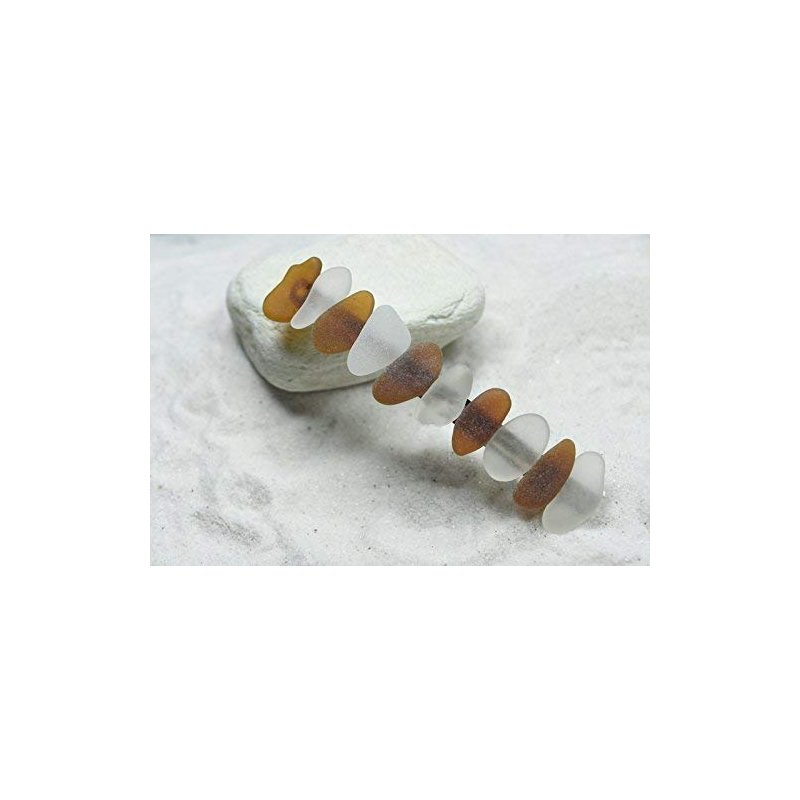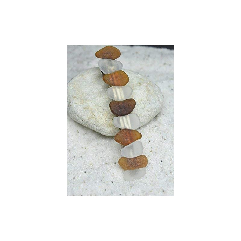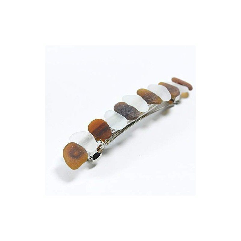 Genuine Surf Tumbled Frosted White and Brown Sea Glass French Barrette Hair Clip 4" or 100 mm Length - Quantity of 1