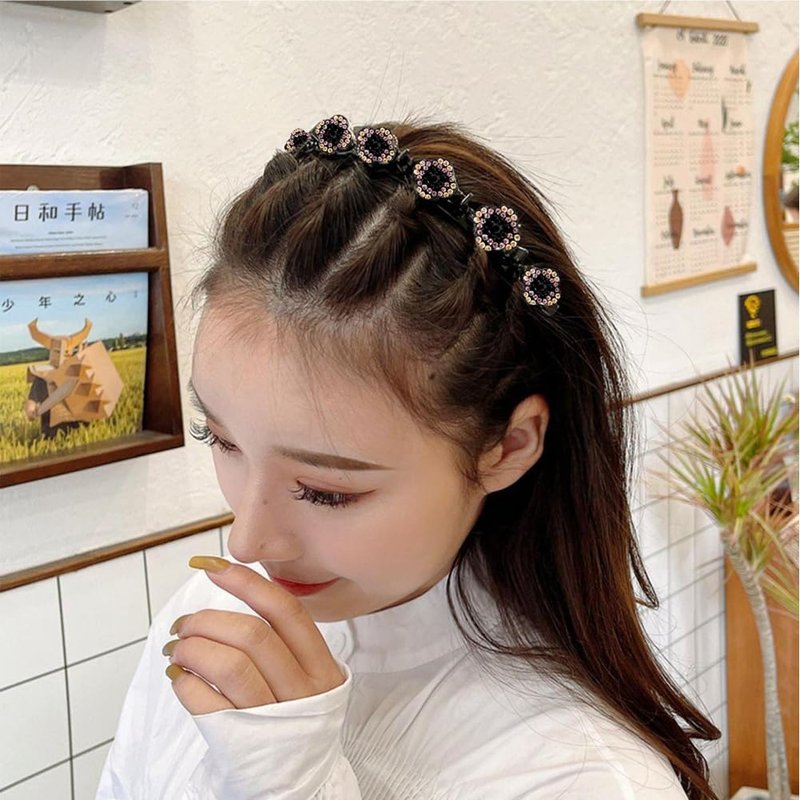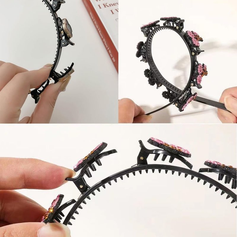 - 【Creative Design】 Double-layer design, the headband has eight small clips can be used in a variety of ways, it can be worn like a normal headband, and can also be used to clamp the bangs with small clips to create a braided effect and make the hair more fluffy,will shrink your face visually