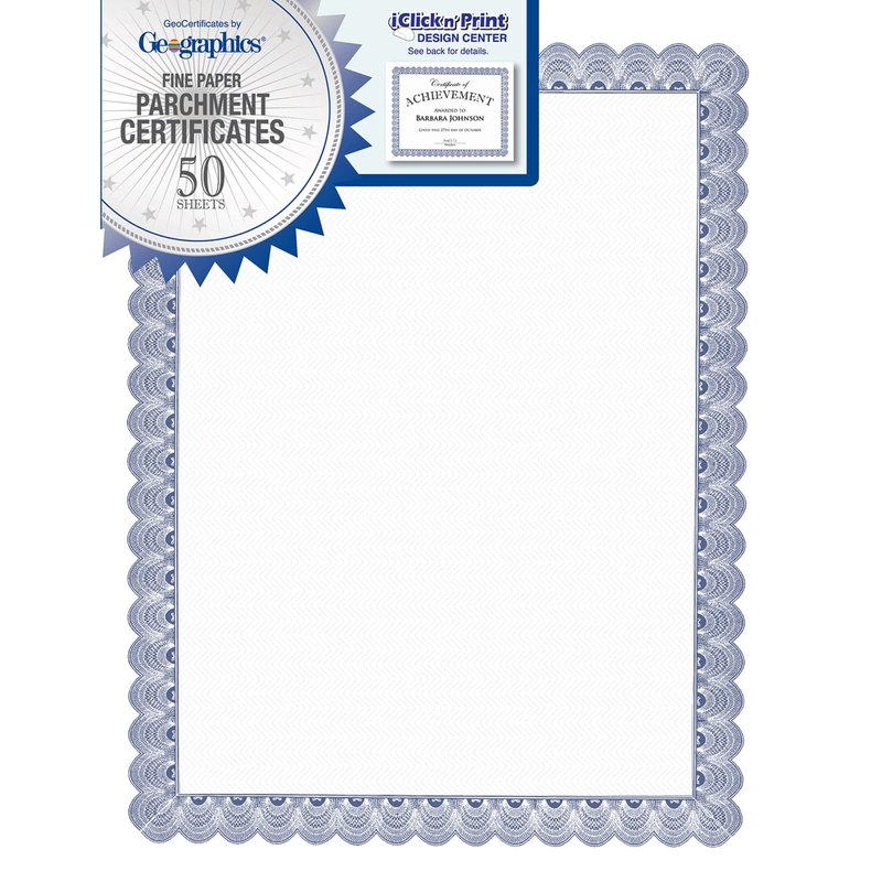 Geographics Blank Parchment Award Certificate Paper, 8.5 x 11", Elegant Blue Border Design (Pack of 50)