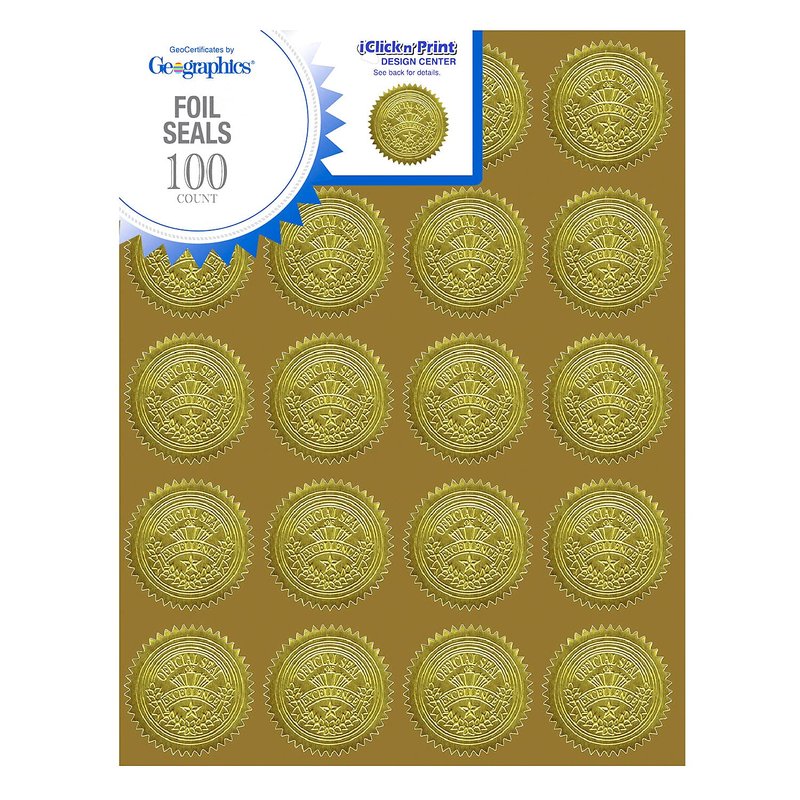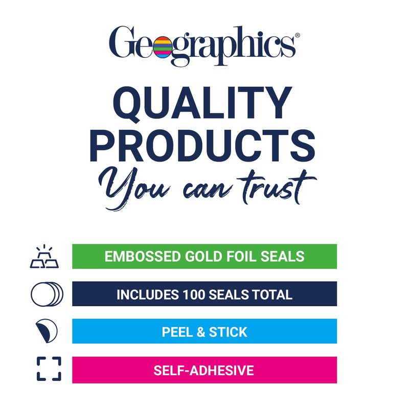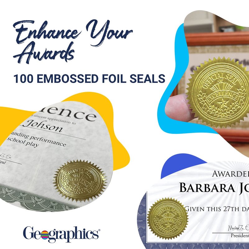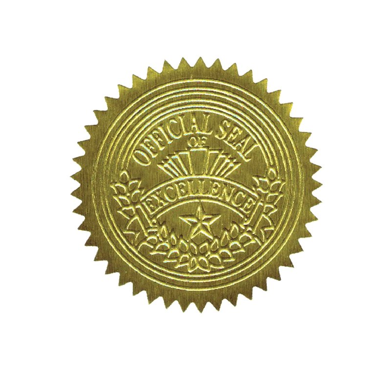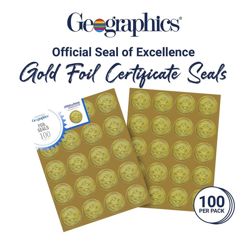 Geographics Gold Foil Award Certificate Seals, Embossed Official Seal of Excellence, 2 inch (Set of 100)