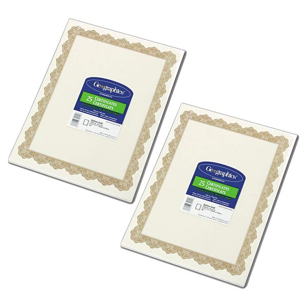 Geographics : Parchment Paper Certificates, 8-1/2 x 11, Optima Gold Border, 25 per Pack -:- Sold as 2 Packs of - 25 - / - Total of 50 Each