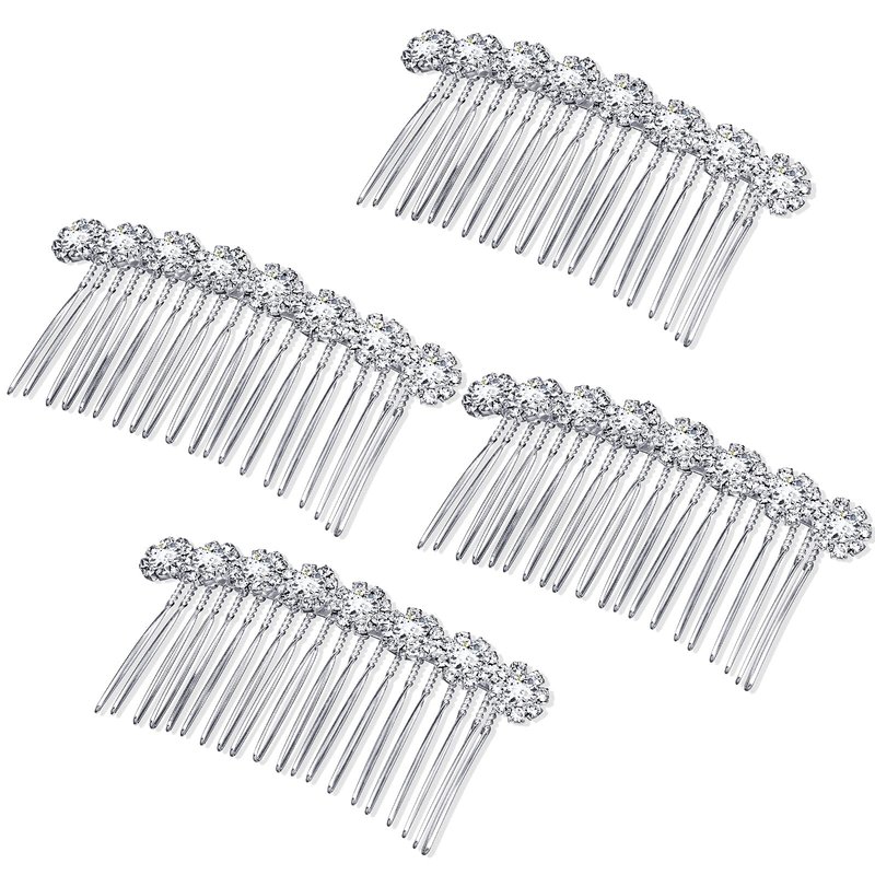Geosar 4 Pieces Alloy Rhinestone Side Hair Combs Crystal Flower Hair Clips Wedding Hair Comb Bridal Jewelry Hair Clips Combs French Hair Accessories for Women and Girls