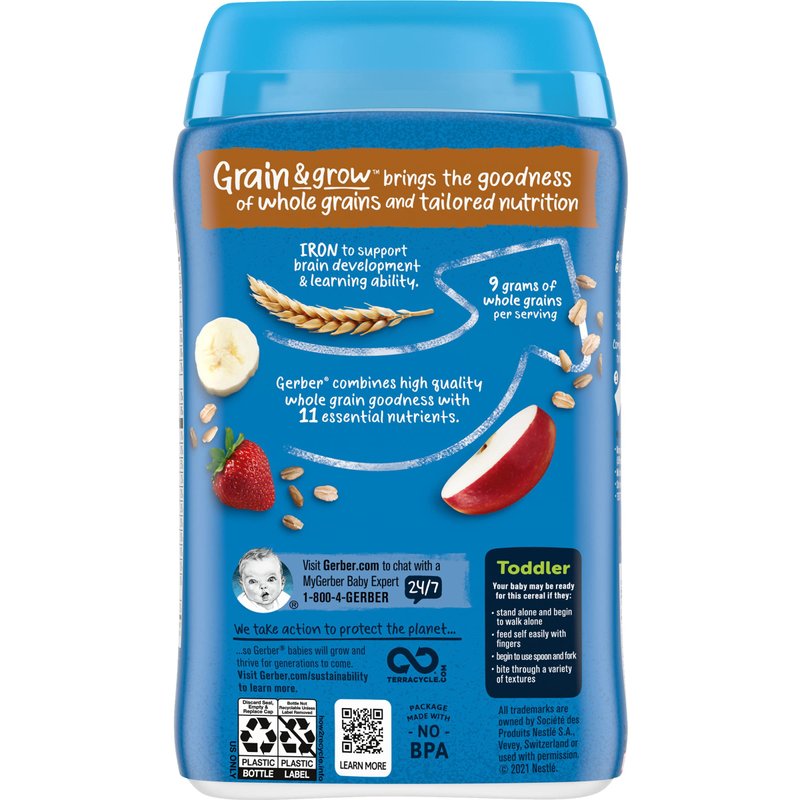 Gerber Baby Cereal Hearty Bits Multigrain Cereal Banana Apple Strawberry, 8 Ounce (Pack of 3)