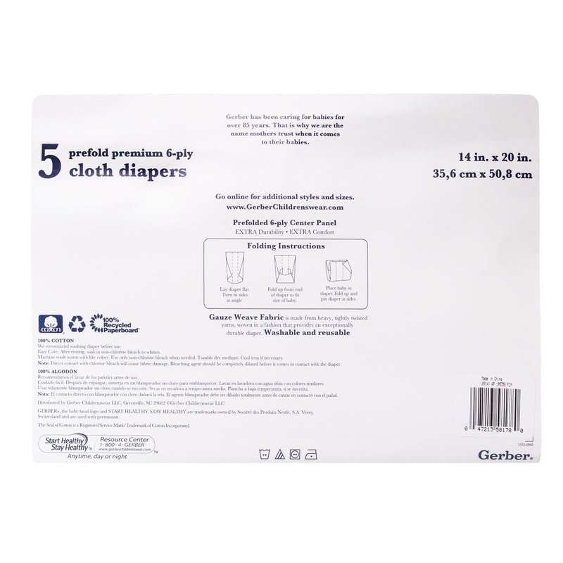 Gerber Prefold Premium 6-Ply Cloth Diapers, 5-Pack