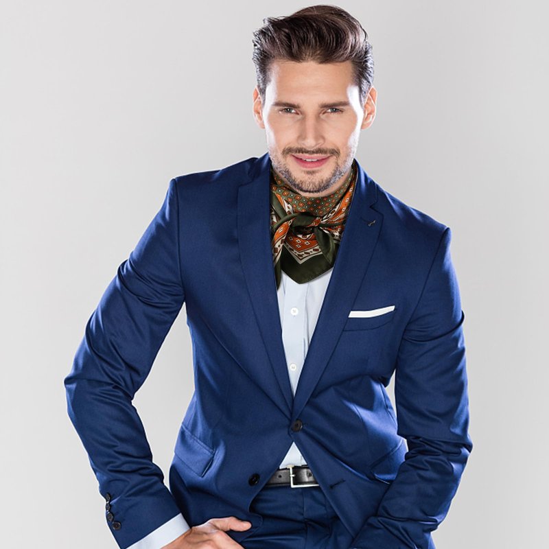 - All-Match Men Neckwear: Foulard can match shirts, t-shirt, jacket, polo, crewneck and V-neck sweaters. Each styles can be showed with different clothing.