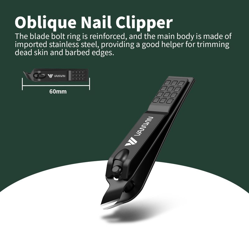Upgrade your nail care routine with the ultimate 4PCS nail clippers set from VANWIN. This comprehensive set includes a large curved toenail clipper, a curved edge fingernail clipper, a slant edge ingrown nail clipper, and a glass nail file. Designed to meet all your toenail, thick nail, ingrown nail, and fingernail trimming needs, it's a must-have for your grooming kit.