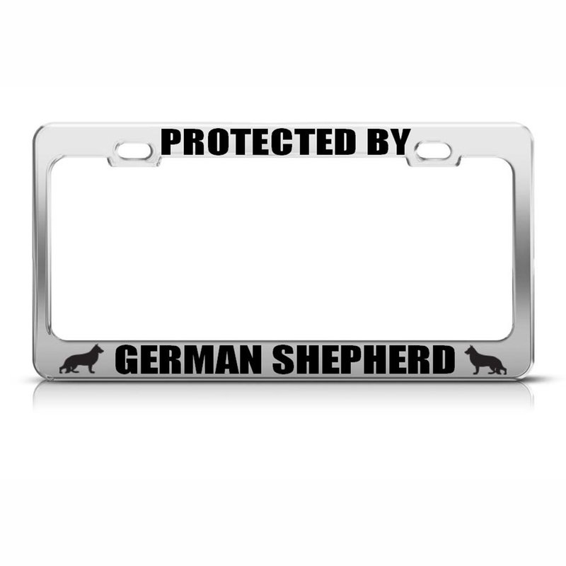 German Shepherd Dog Pets Metal License Plate Frame Tag Holder Auto Chrome