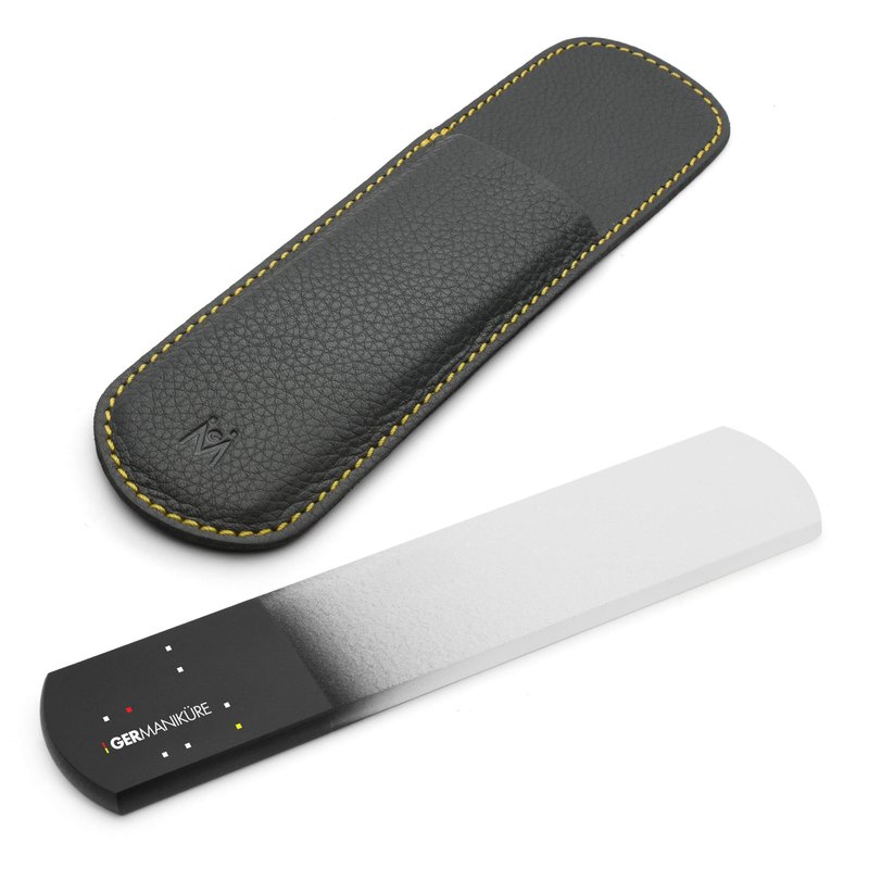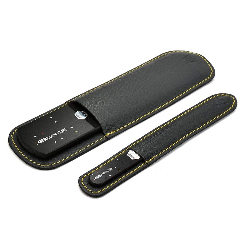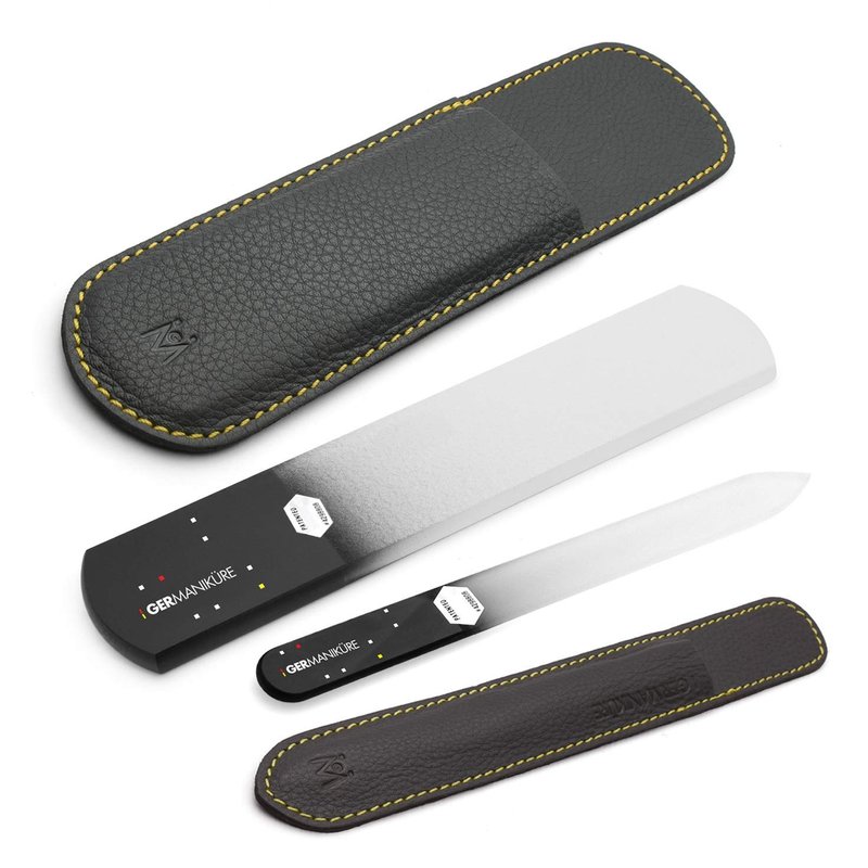 GERMANIKURE Black Glass Nail File & Pedicure Bar Set in Leather Cases - Ethically Made in Czech Republic - Professional Manicure & Pedicure Kit for Fingernail Care, Foot Callous & Dry Skin Removal