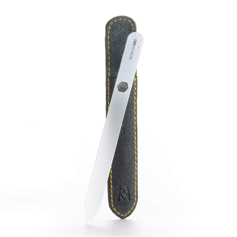 GERMANIKURE Czech Crystal Glass Nail File in Suede Leather Case - Original White Branded - Professional Manicure & Pedicure Products for Smooth Easy Shaping of Natural Nails