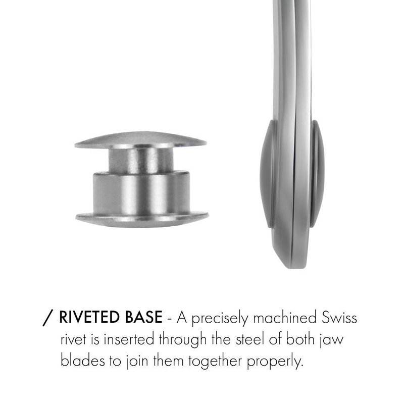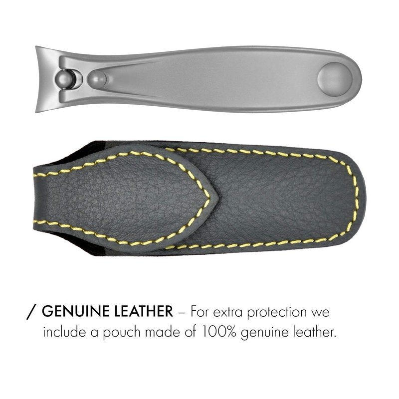 Regular clippers, made of cheap steel, simply crush nails then fall apart after dulling. GERmanikure clippers are made of imported, surgical-grade steel from Sweden, the hardest steel available. This special steel keeps our clippers sharp for decades. We then secure the base with precisely machined rivets produced by a Swiss watch manufacturer, to ensure the clipper will never fall apart. Our 'pin and post' contraction provides durability and a smooth operation. GERmanikure clippers are a true example of quality German engineering and production. LIFETIME GUARANTEE – This nipper is made, tested, and sharpened by hand, and guaranteed to be free from any defects in materials and workmanship. FREE SHARPENING – Comes with lifetime free sharpening and maintenance at our factory in Solingen, Germany. SWEDISH STEEL – Since clipper blades touch constantly, we import super hard, surgical-grade steel from Sweden to keep them razor sharp. RIVETED BASE – A Swiss rivet is used to secure both jaws together. Machined in Switzerland, it is then shipped to Germany where it is inserted completely through the steel of both jaw blades to join them together properly. PIN AND POST – No hooks! The Clipper’s handle is assembled with a pin and post to stay together for a lifetime. SOLINGEN HAND-SHARPENED – Every GERmani-kure clipper is hand sharpened, assembled, and polished by Solingen artisans. SURGICAL STEEL – Our nipper is made of High Grade High Carbon Stainless Steel. Other manufacturer's nippers, made of stainless steel, or carbon steel, do not compare. GERmanikure nippers always hold the sharpened edge, and will never rust. SWISS TECHNOLOGY – To join the blades together, we import precision machined rivets from the Swiss clockwork industry, ensuring the strongest and most precise performance. FULLY STERILIZABLE – Safe for any type of sterilization methods. GENUINE LEATHER – For extra protection we include a pouch made of 100% genuine leather.