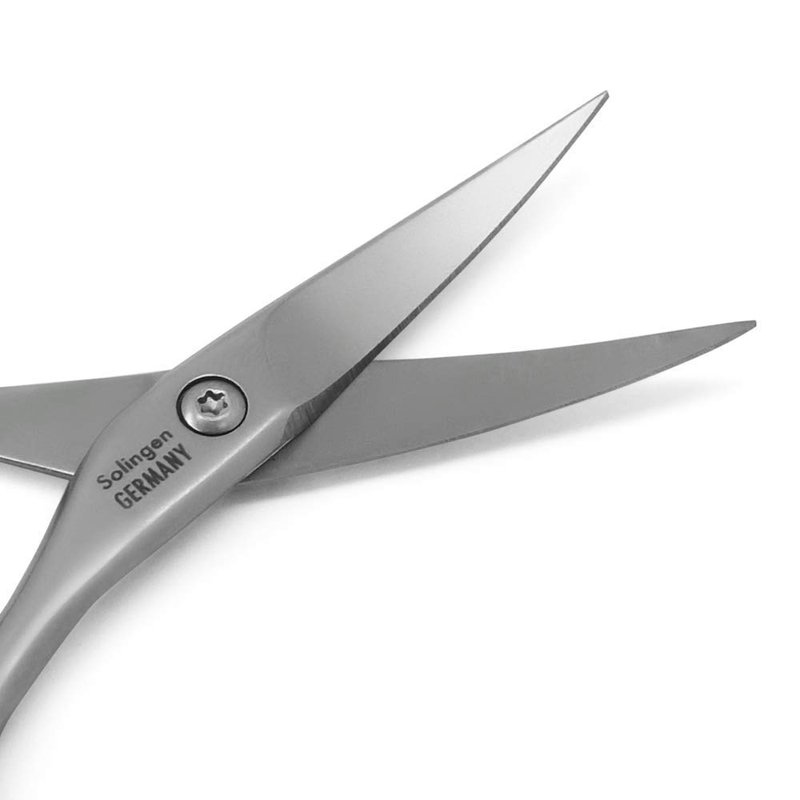 These scissors are NOT mass-produced. All GERmanikure scissors are hand-assembled with hand-hammered blades, then manually sharpened by Solingen artisans. Each screw is set by hand with a screwdriver to ensure proper tension. Our unique, beveled joint minimizes friction and reduces wear, providing a flawless, shearing cut. Made of FINOX high carbon stainless steel and tempered to 52 Rockwell hardness, these scissors will likely be the last pair you will ever need.