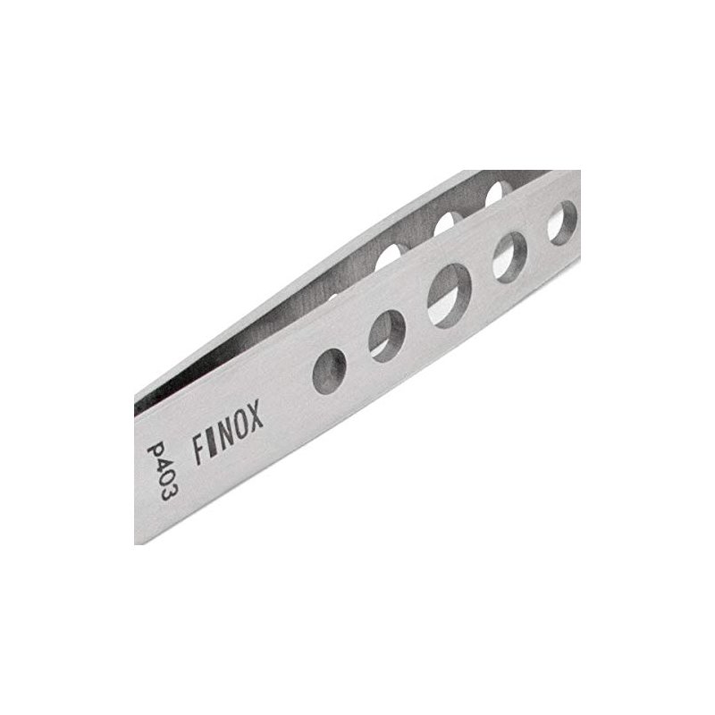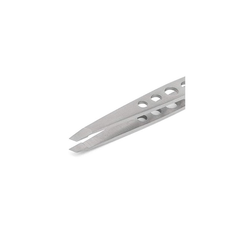 When you squeeze a pair of common 'drugstore' tweezers firmly, the tips often gap open slightly. Our tweezers won’t gap. We use much harder steel, which allows us to provide a more detailed and precise manufacturing process. These slanted tweezers have larger grip jaws to provide a more firm and secure grab. The perforated handle allows a more secure hold and firm grip, and is lighter than a non-perforated model. This product is made of high quality stainless steel, is fully sterilizable, and recommended for professionals.