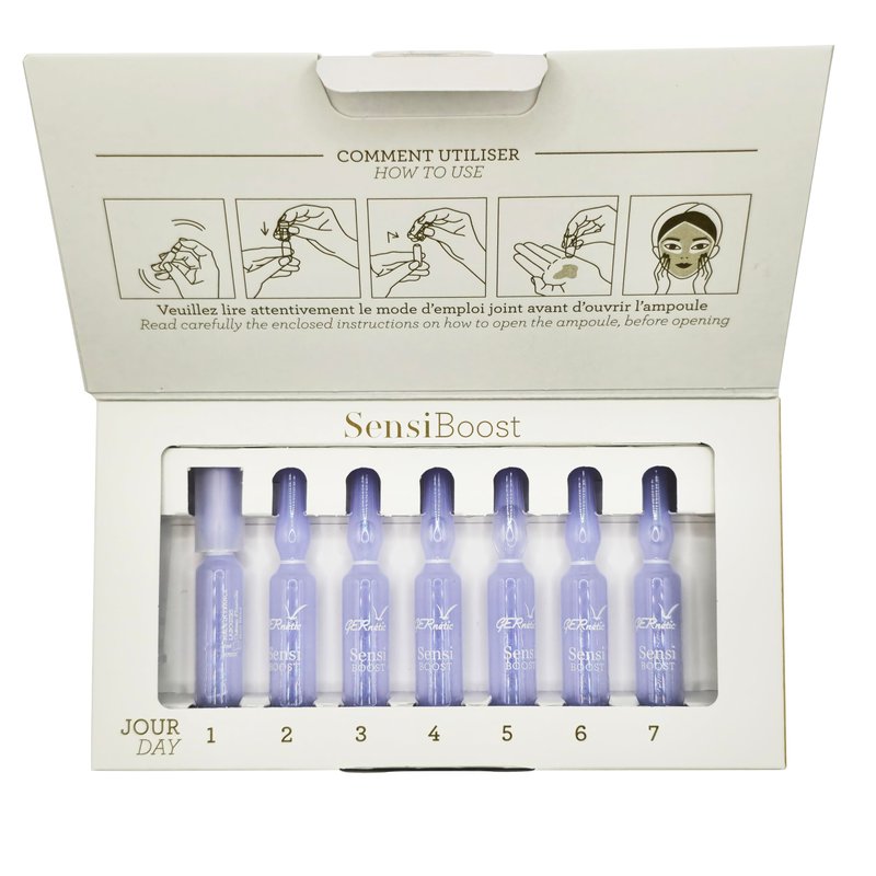 Gernetic's Sensi Boost is a soothing lotion specially formulated for delicate and sensitive skin types. This gentle serum comes in a convenient pack of seven 2ml (0.06oz) ampoules, perfect for travel or trying out the product before committing to a full-size bottle. The lightweight, non-greasy formula is designed to nourish and calm easily irritated complexions, providing much-needed relief from redness, itching, and discomfort. Sensi Boost is enriched with natural, skin-soothing ingredients that help strengthen the skin's protective barrier and restore its optimal moisture balance. Simply smooth a few drops onto clean skin morning and night for a softer, more comfortable, and radiant complexion. Suitable for all skin types, this serum is a must-have for those with sensitive or reactive skin.