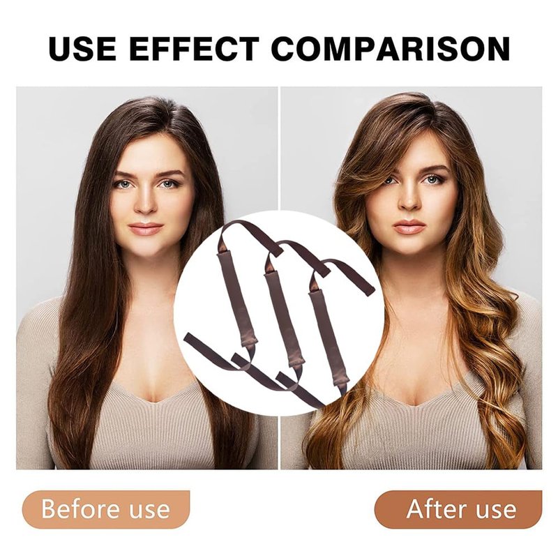 3 PCS heatless hair curling rod headband for all hair types easy to use comfortable satin heatless hair curlers Specification: Item Type: Heatless hair curling rod Color: Brown Material: Satin and soft material Package Include: 3 x heatless hair curlers with long ribbon Features: Easy to Use and be suitable for most length and types of hair Upgraded, soft and comfortable material, no damage for your hair Lightweight and easy to carry. You can use it when you are studying or sleeping The latest and trendy heatless hair curler makes you have healthier and more fashionable hairstyle