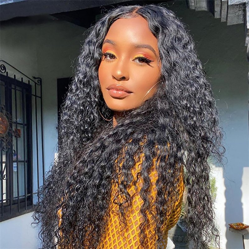 GERRIT Long Curly Wigs for Women 26 Inch Lace Front Black Wig Deep Wave Natural Curls Wig HD Transparent Lace Closure Wigs Heat Resistant Lace Frontal Human Hair Wig, Natural Black