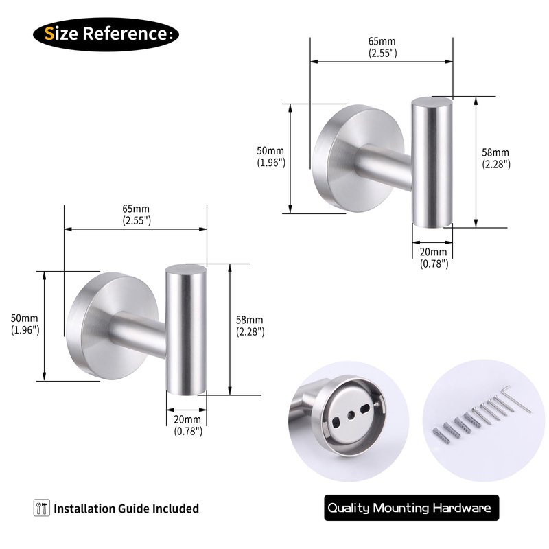 GERZWY Bathroom Towel Hook SUS 304 Stainless Steel Single Coat/Robe Clothes Hook for Bath Kitchen Contemporary Hotel Style Wall Mounted 2 Pack Brushed Finish AG1107B-LS