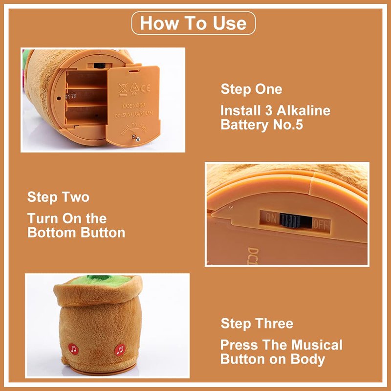 - EASY TO USE DANCING FLOWER: Open the battery cover at the bottom of it,put the battery in ,Close the battery cover,Turn on the black switch nearby,placed it on a desktop or flat surface,Then it starts dancing with music