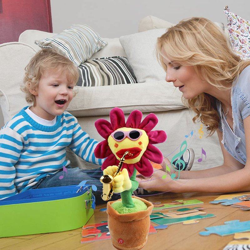 We recommend dancing sunflowers,This is a FUNNY TOY, It can sing and dance with saxophone,but only its own songs built in,Special design and excellent performance will bring you endless joy.