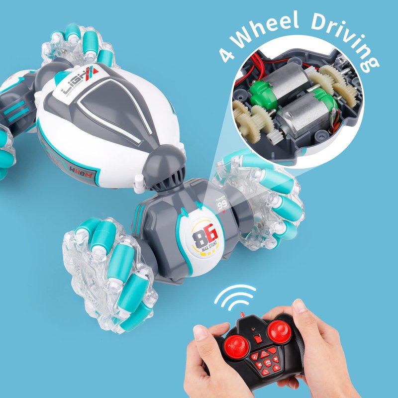 - 【Play With Gesture】 The remote control stunt car kit supports quick response to gesture control. Putting on the sensing watch, when fingers dance, the car will follow.