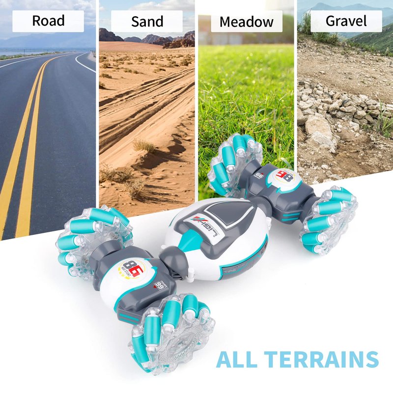 - 【Durable to Hit the Road】 The bionic joint is designed to conquer gravel, lawn, beach and other terrains. It allows the stunt car switch from on-road mode to off-road in seconds, and won't fall apart when hitting the difficult road.
