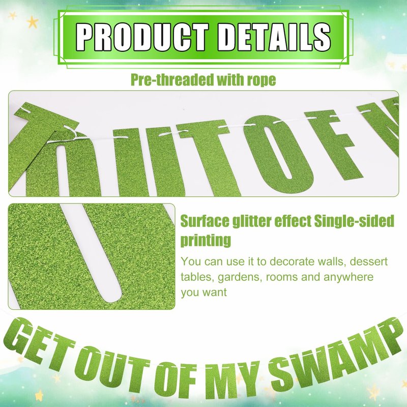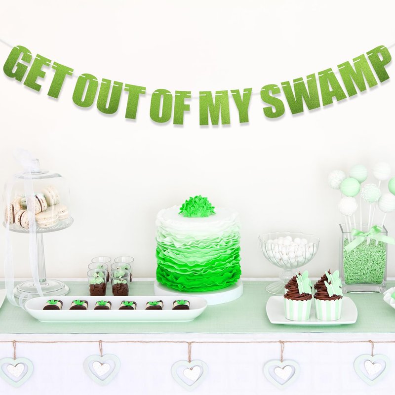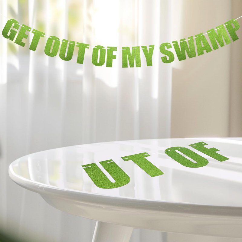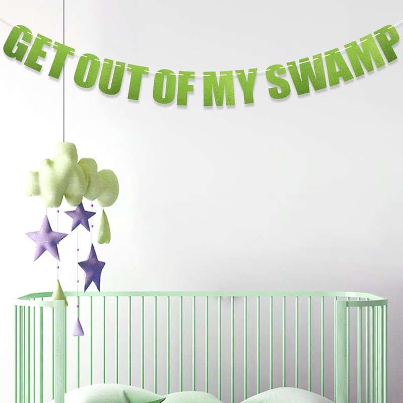 Get Out of My Swamp Banner, Swamp Decorations Pre-Assembled Housewarming Party Decorations Glittering Green Banner Gifts for Theme Birthday Party Supplies