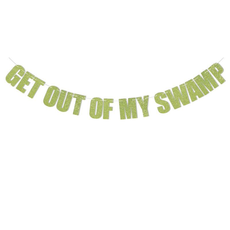 Get out of my Swamp Bunting Banner, Green Glitter Birthday Party Decorations, Funny Housewarming Party Decor
