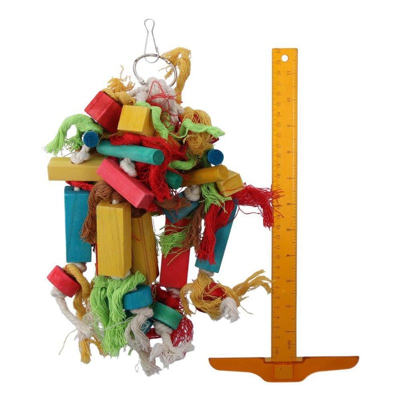 - Versatile and Multi-Functional: This nibbling toy offers more than just entertainment. It also serves as a grooming tool, helping to keep your parrot's beak and nails in check. Wooden blocks of different shapes and textures provide your parrot with a variety of exploration surfaces, promoting beak maintenance and overall health.