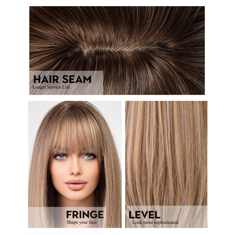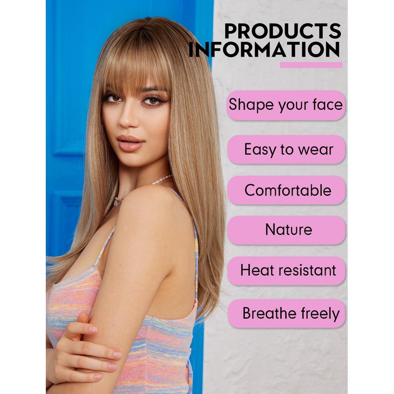 - Charming Wig—Long straight hair with bangs,very stylish design with natural pretty looking and soft touch.Natural color,looks real and natural