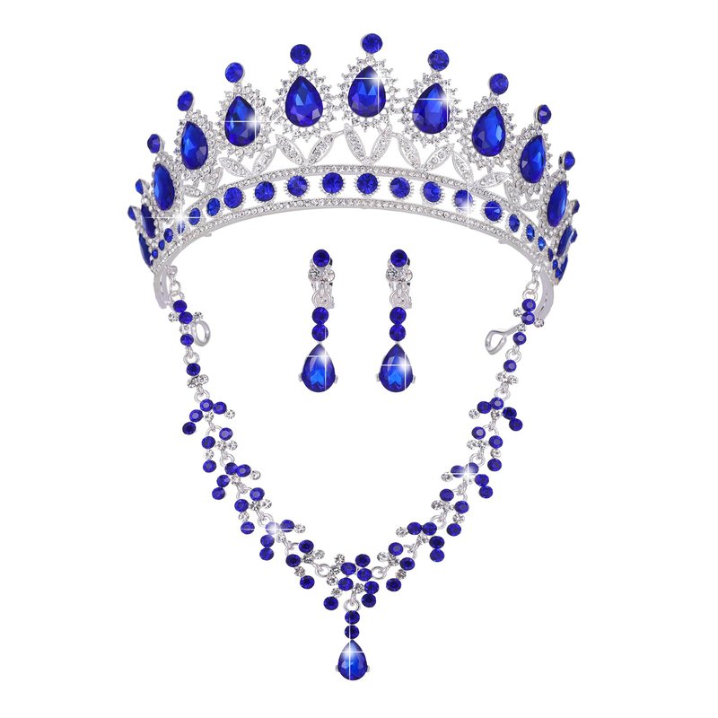 - ♕Sparkling crown & earrings & necklace jewelry set, ideal for Weddings, Birthdays, Proms, Costume Party, Theater, Bridal Showers, Halloween or other special occasion.