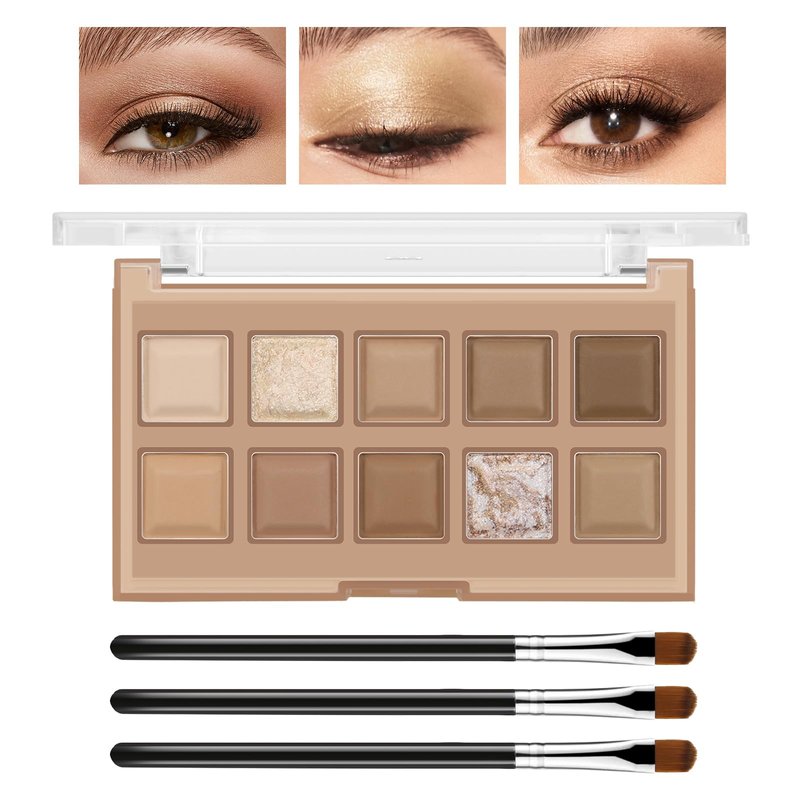 GEUUFEA 10 Colors Professional Eyeshadow Palette, Matte & Glitter & Shimmer Eyeshadow Makeup Palette with 3 Eyeshadow Brush, High pigmented and Long Lasting
