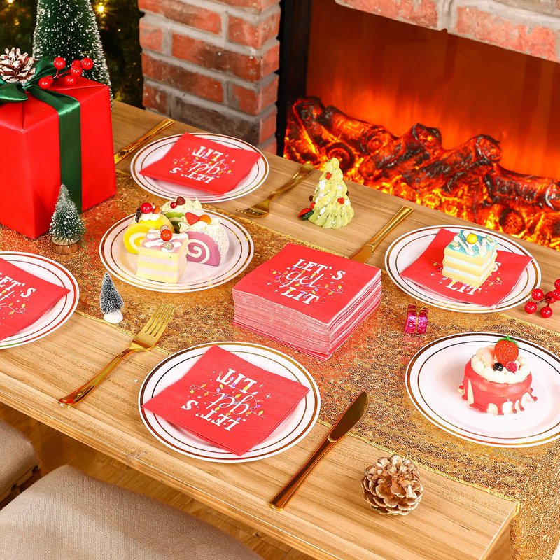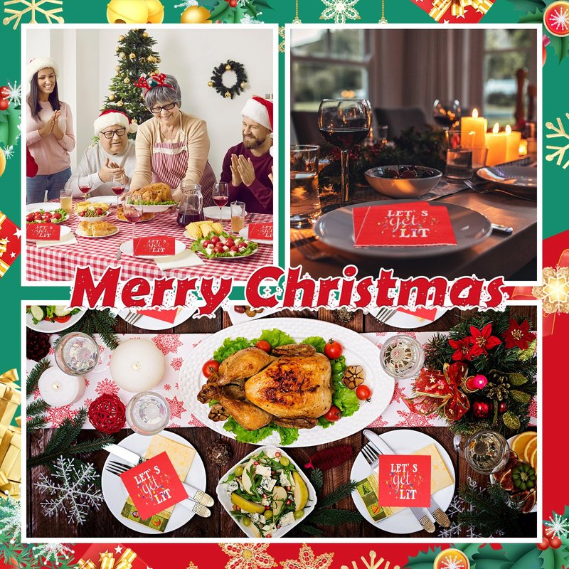 Geyoga 100 Pcs Christmas Cocktail Napkins Lets Get Lit Beverage Napkins Funny Holiday Napkins for Dinner Christmas Party, 2 Ply, 5 x 5 Inch