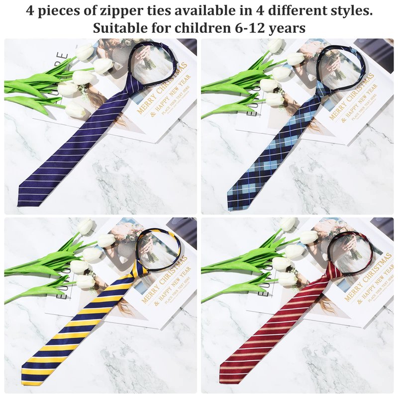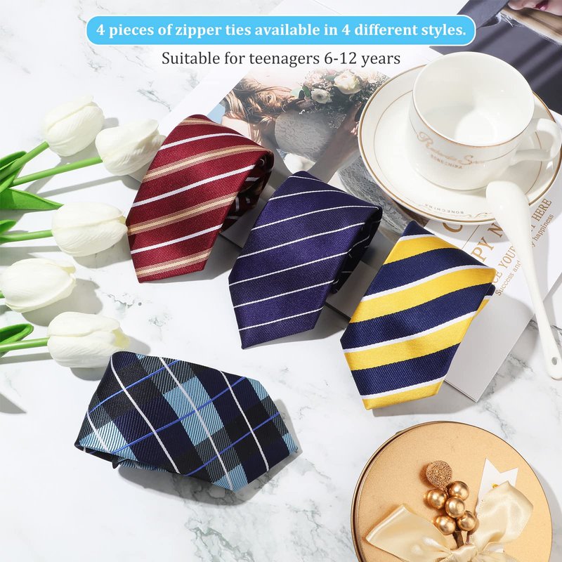 - Stylish Necktie Set: you will receive 4 pieces of boys' neckties, come in striped and other design, stylish and classic, easy to match different clothes and suitable for various occasions, enough amounts can meet your daily needs and replacement