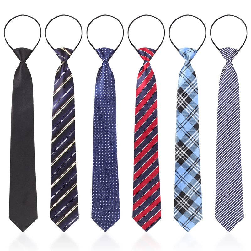 Geyoga 6 Pcs Zipper Ties for Boys Girls Men Women Pre Tied Adjustable Necktie for School Uniform Graduation Business Wedding (Classic Style)