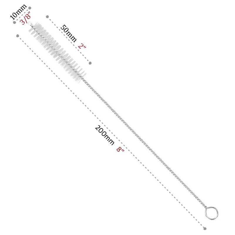 - Cleaning brush total length: 8" (200mm) ; Bristle head: 2" (50mm) long x 3/8" (10mm) diameter.