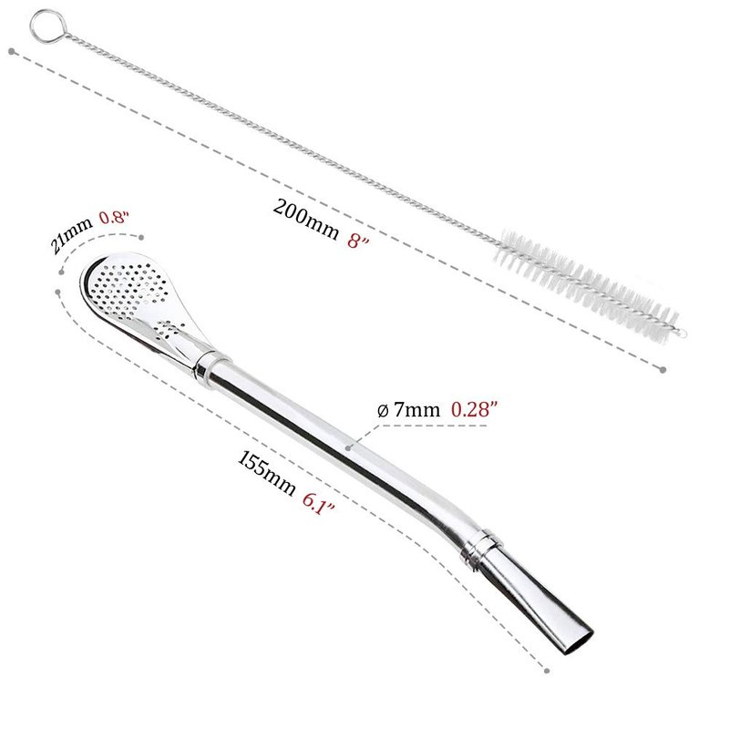 GFDesign Yerba Mate Bombilla Gourd Drinking Filter Straws 304 Food-Grade 18/8 Stainless Steel - Set of 2 with Cleaning Brush - 6.1" Long