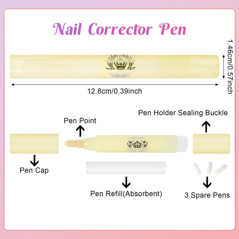 - Package Includes: you will receive 8 nail polish correction pens, each with 3 extra nibs, replaceable and reusable, If you accidentally apply nail polish to the wrong place, you can remove it with our nail edge cleaner.