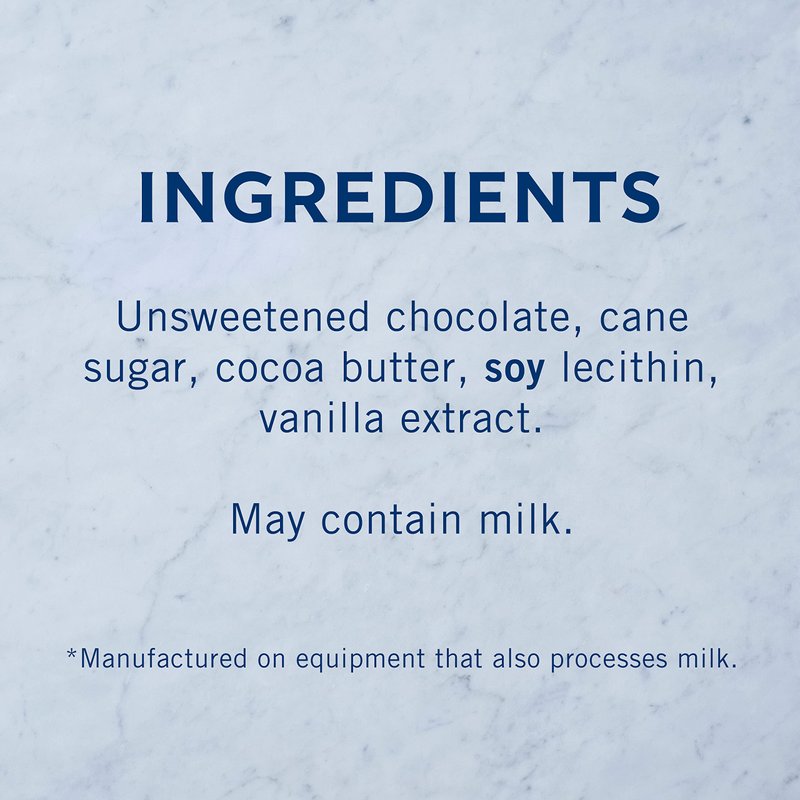 - Made with cocoa butter, real vanilla extract, unsweetened chocolate and just the right amount of cane sugar