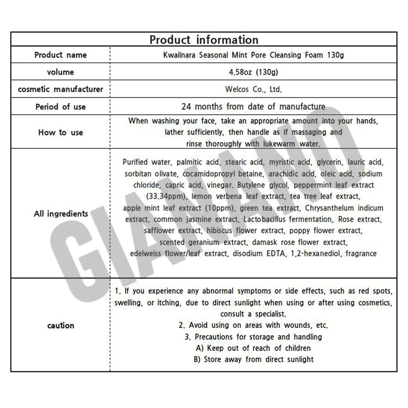 Korean facial cleansing foam, a cleansing foam that deep cleans with a sticky foam to remove residues and leave skin moisturized without dryness.