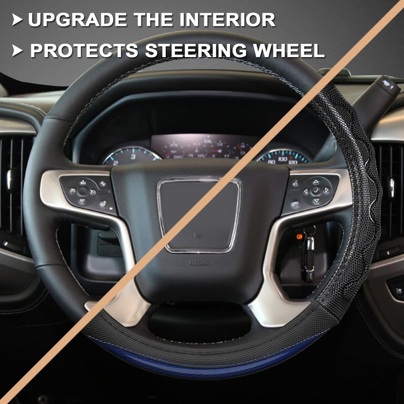 GIANT PANDA car steering wheel cover fits GMC 14.5-15-inch Steering Wheel. It features a 3D honeycomb design with excellent slip and sweat resistance. The non-slip design makes it easier to grip for better steering wheel control.
