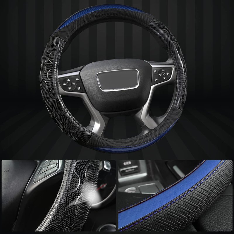 - 【PREMIUM MATERIAL】This steering wheel cover is made of PVC leather with honeycomb breathable hole, it can greatly reduce the hand sweat to increase comfort. It is wear-resistant and durable.