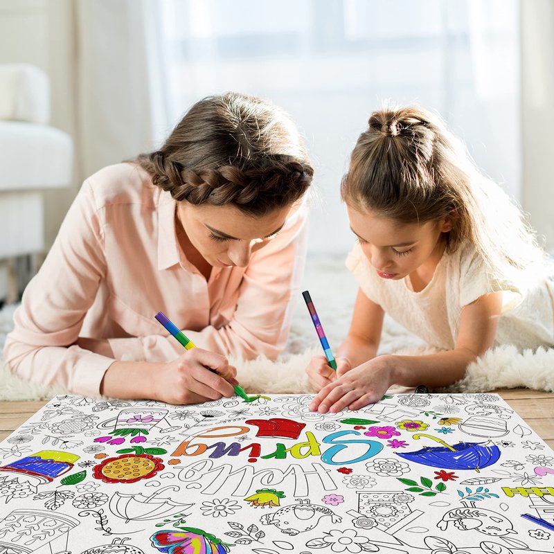 - Large Size: The giant spring themed coloring tablecloth poster measures approximately 43 x 31 inches / 110 x 80 cm, the total length of the crayons with a transparent cap is 10 inches/25cm, you can change the position of the color and crayons length. Huge enough poster perfect for families to paint on spring themed parties, also suitable for classroom parties and crafts parent-child activities work and play together as a group activity