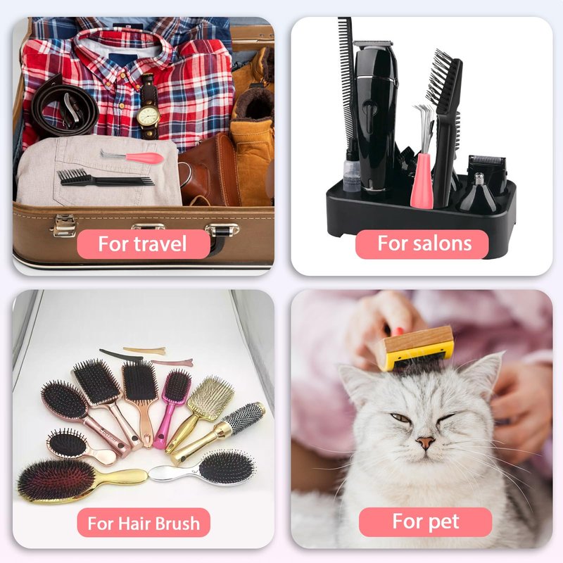 - 【Multi-function Cleaning Brush Set】Our hair brush cleaning tool set includes 1 black double-ended brush and 1 pink mini cleaning brush, designed for thorough removal of hair, dirt, and lint. A double-ended brush has longer bristles on one end for hair removal and a shorter tip on the other end, perfect for removing dirt and lint. The brush cleaning rake easily cleans and removes loose hair, dust, and lint from your brushes.
